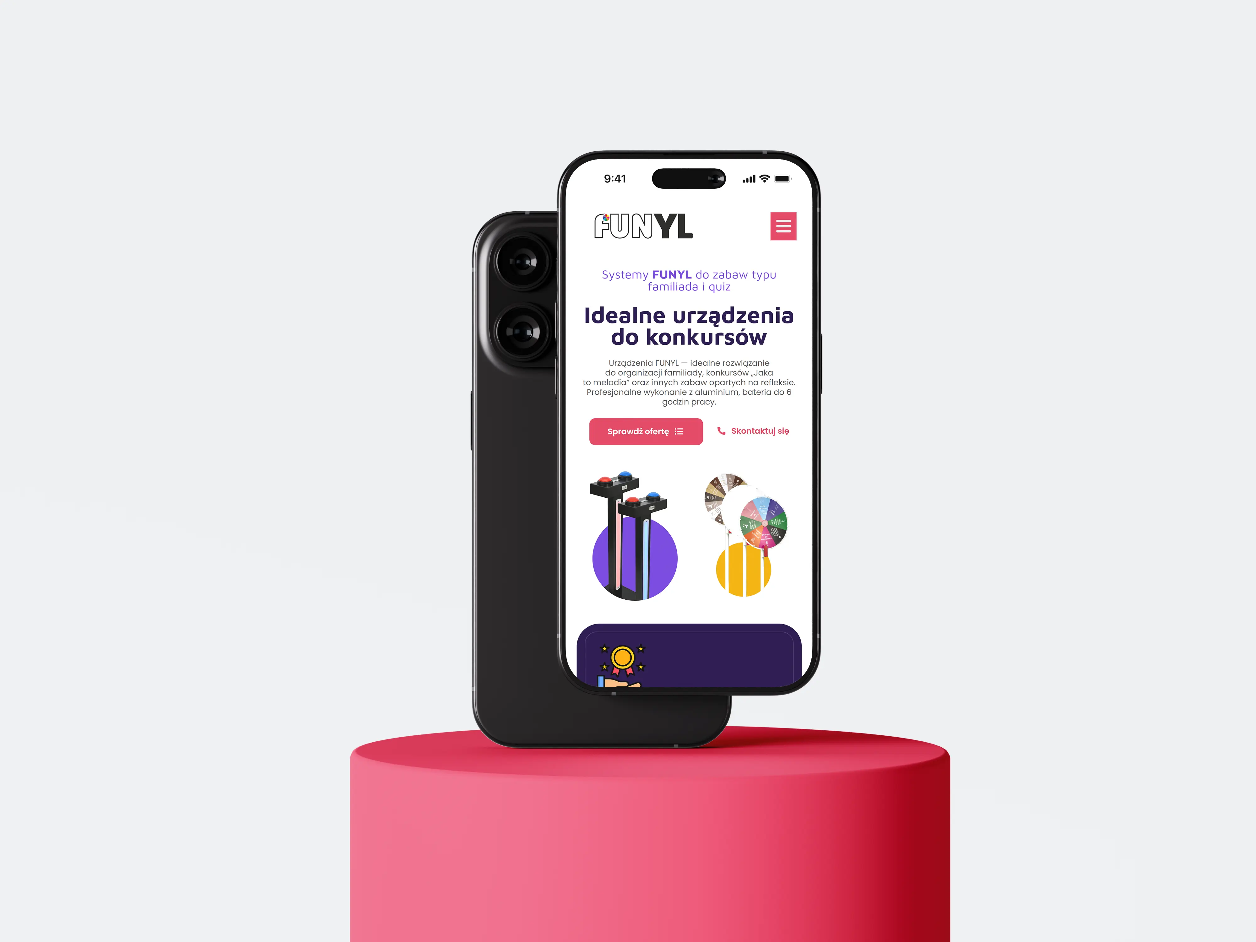 Urządzenia FUNYL to praktyczne i niezawodne rozwiązanie do organizacji familiady, konkursów „Jaka to melodia” oraz innych gier wymagających refleksu. Solidna, aluminiowa konstrukcja zapewnia trwałość i estetykę, a wydajna bateria pozwala na nawet 6 godzin ciągłej pracy.